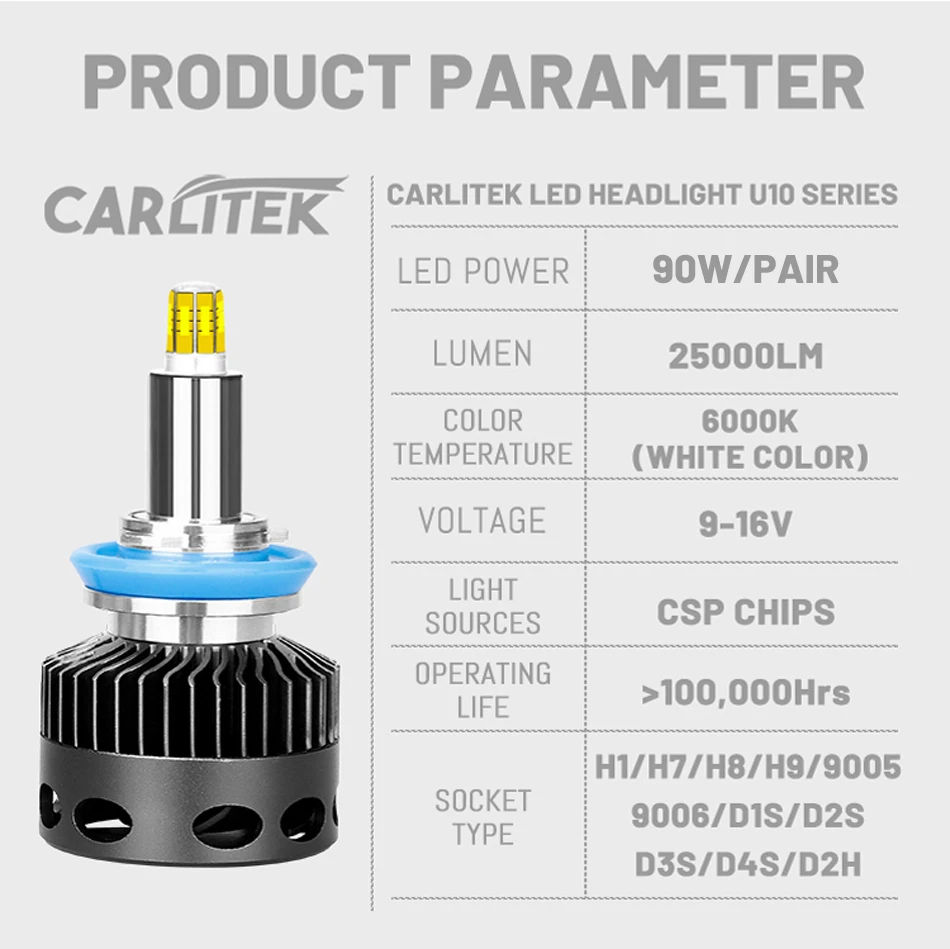 Светодиодные Автомобильные лампы Carlitek H7 H8 H9 H11, противотума...