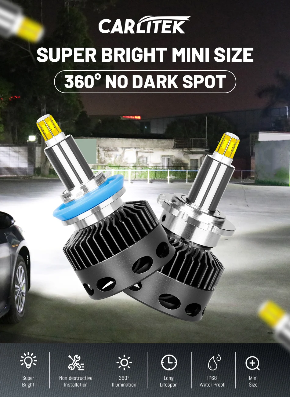 Автомобильные светодиодсветодиодный фары Carlitek H7, 360 градусов,...