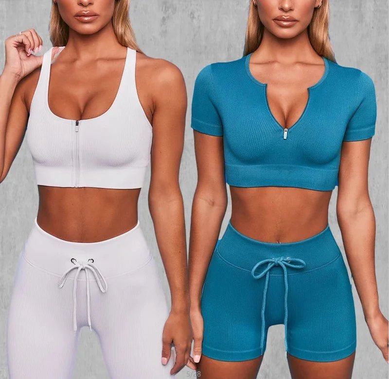 Женский тренировочный комплект на молнии, бесшовный комплект из 2 предметов, укороченный топ, бюстгальтер, шорты, спортивный костюм, костюм, одежда для спортзала, комплекты для йоги