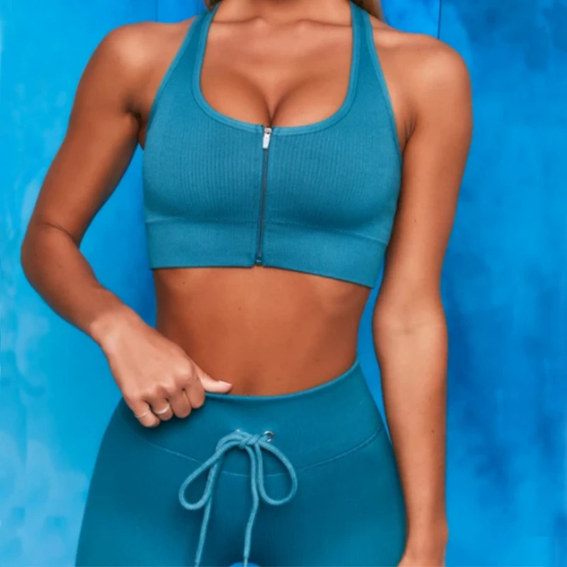 Бесшовный комплект для йоги на молнии, Женский комплект из двух пре...