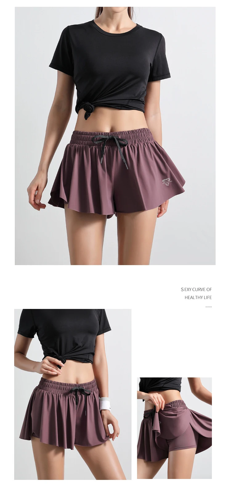 Летние спортивные и фитнес-шорты Женщины анти-воздействия на открытом воздухе быстросохнущие брюки дышащий бюстгальтер без косточек для теннис юбка в складку