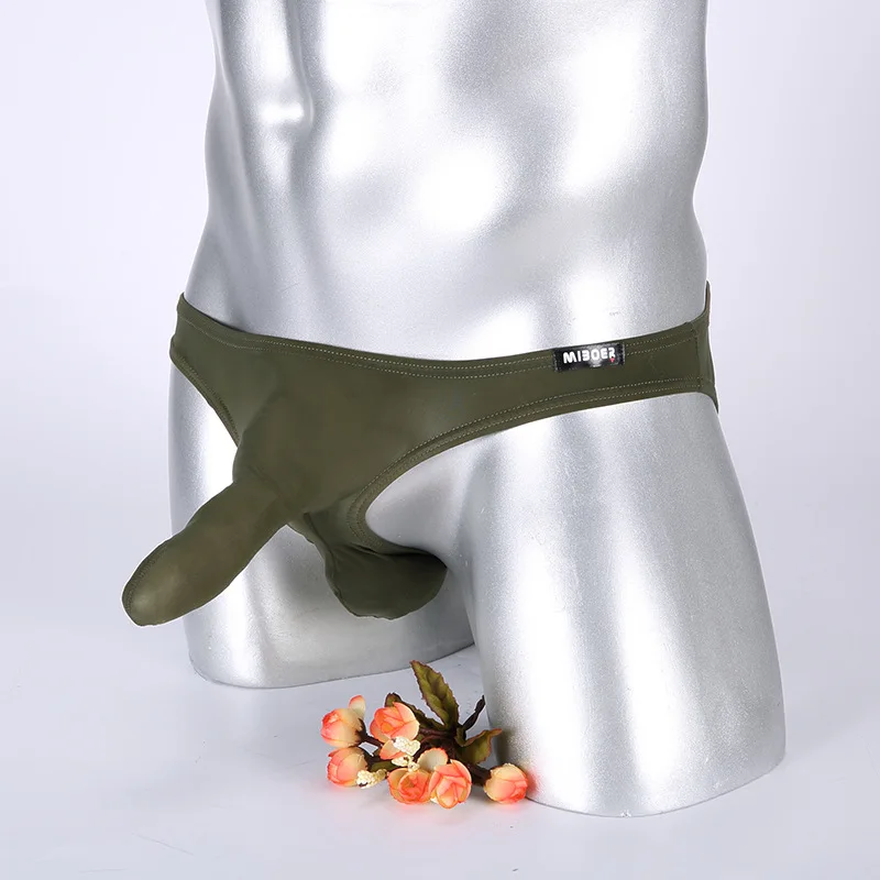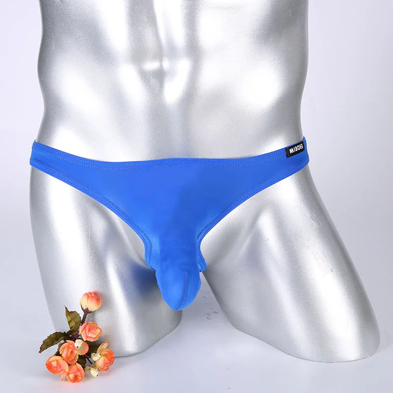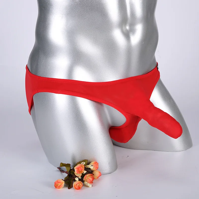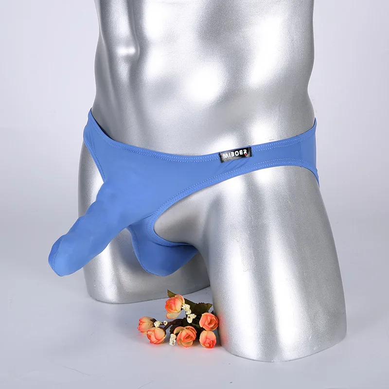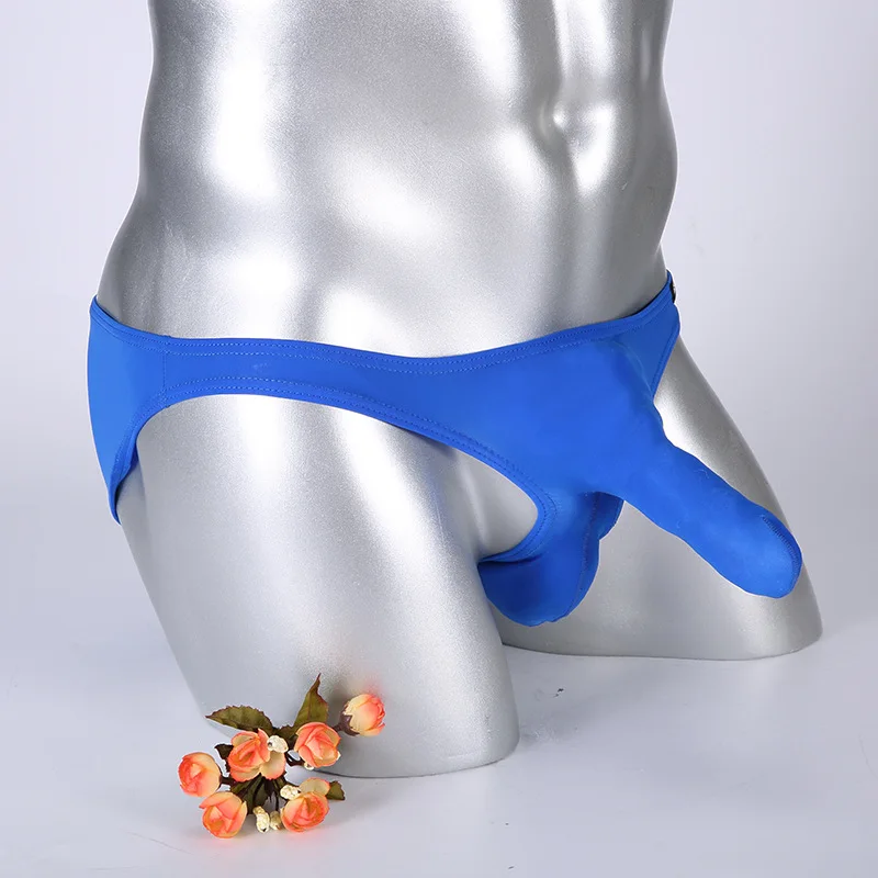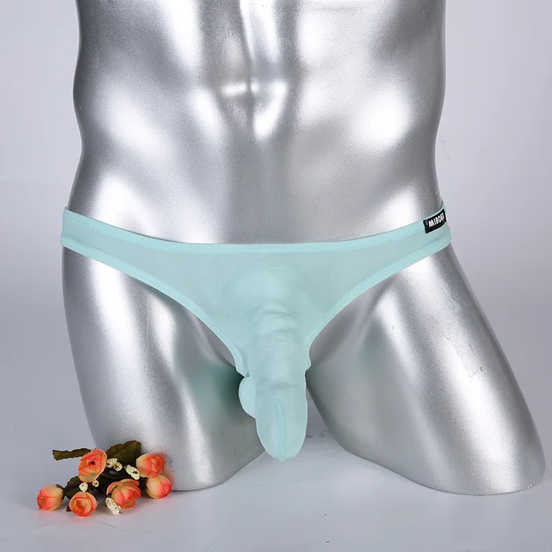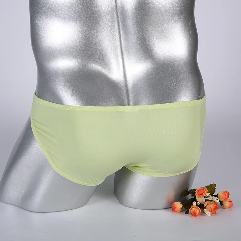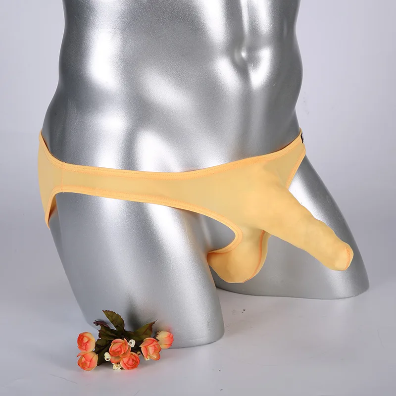 Трусы-брифы мужские из ледяного шелка, пикантное Супертонкое нижнее белье, плавки, бикини, с мешочком в виде слона для носа, Длинные Трусы-слипы