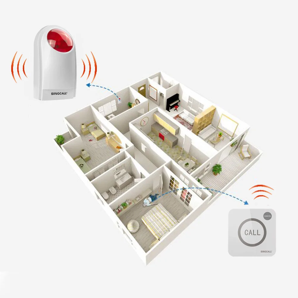 Беспроводная уличная звуковая Стробоскопическая сирена SINGCALL, система сигнализации с 4 пейджерами APE520C для дома, отеля, супермаркета