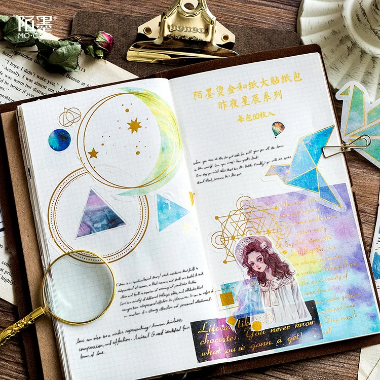 Декоративные наклейки, 60, шт.пакет, наклейки из бумаги васи, с планетами, луной, звездами, для скрапбукинга, для журнала, канцелярские принадлежности