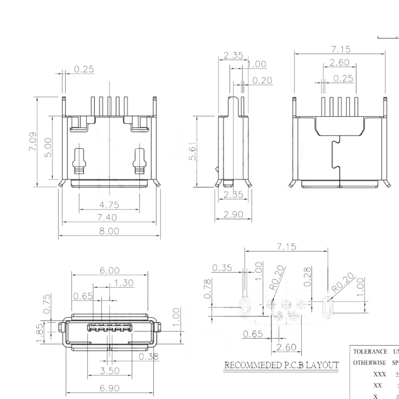 Гнездо Micro USB Type B, 10 шт., 180 градусов, 5-контактный разъем для пайки SMD SMT