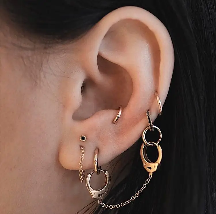 Guemcal ZS двойное кольцо для пирсинга цепь на нос циркон для носа ...
