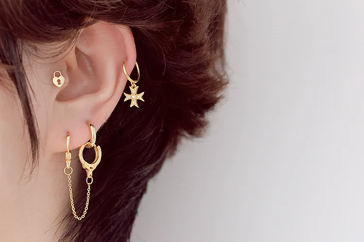 XIYANIKE 925 стерлингового серебра с двойным замком цепи серьги в виде колец, Женская мода простой темперамент личности изысканные украшения