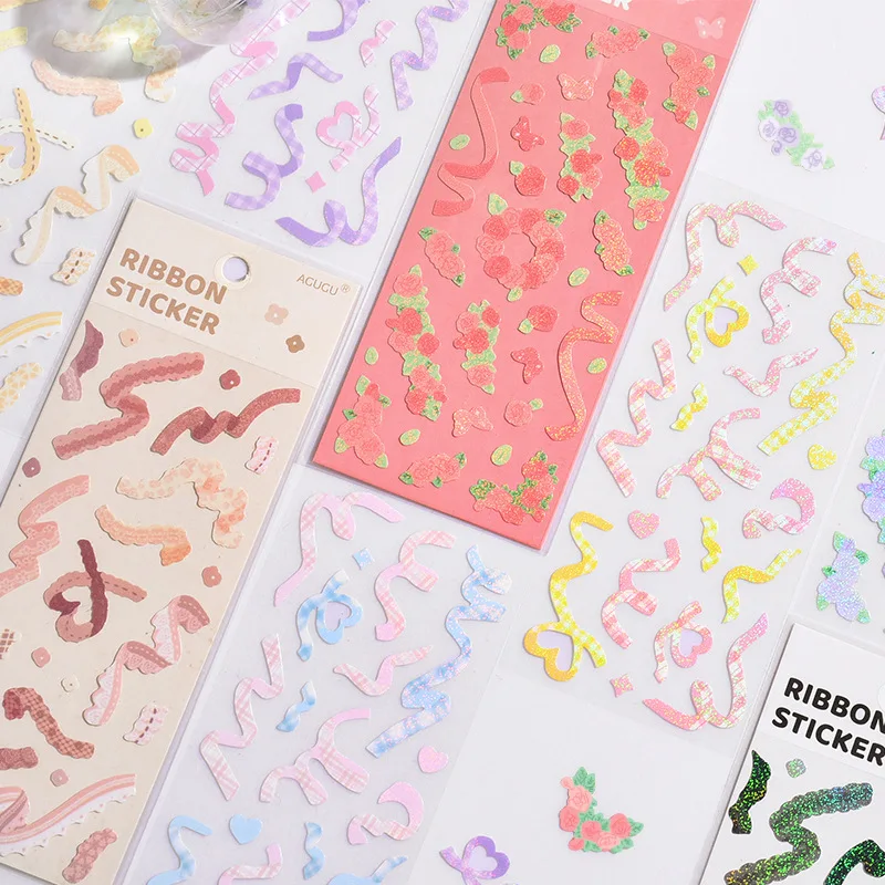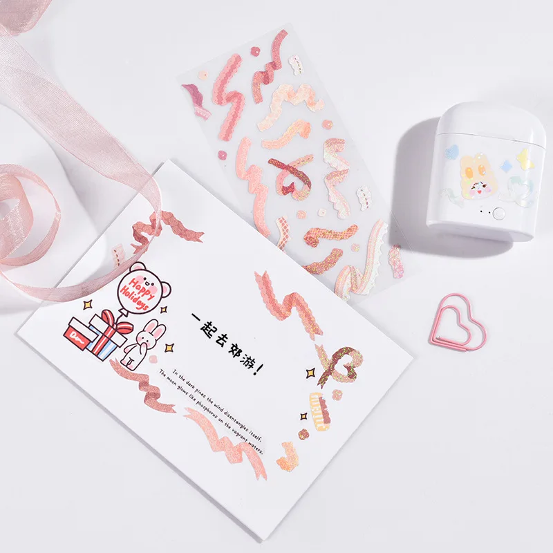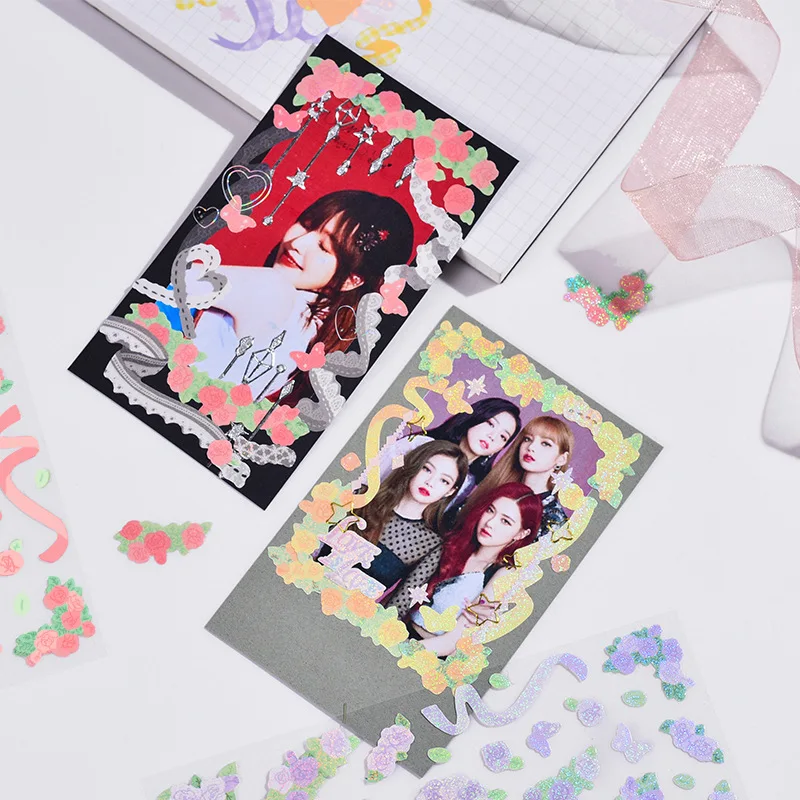 Лента с блестками, кавайная наклейка, цвет, букет роз, милые наклей...