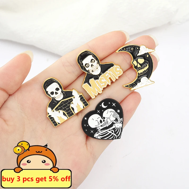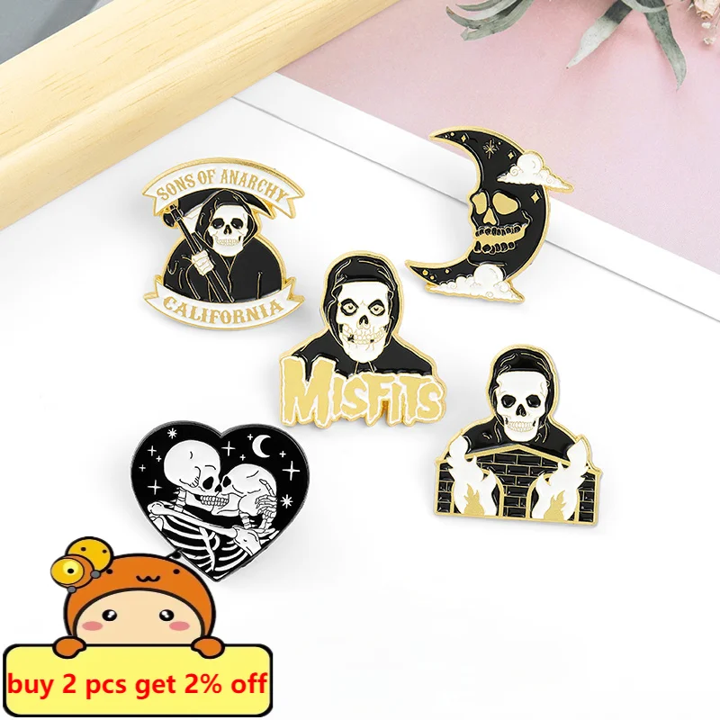 Значок с эмалью Mr. Skull, в готическом стиле, для влюбленных, в стиле Луны, панк, нагрудный знак брошь, ювелирные изделия в подарок для детей, оптовая продажа
