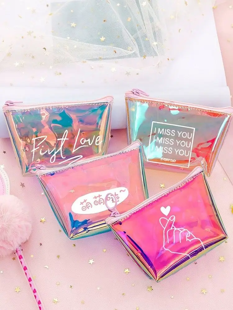Лазерный красочный гигиеническая прокладка мешок чехол для карандашей s Прозрачный чехол для кредитных карт держатель для карт органайзеры для косметики чехол для наушников монетница