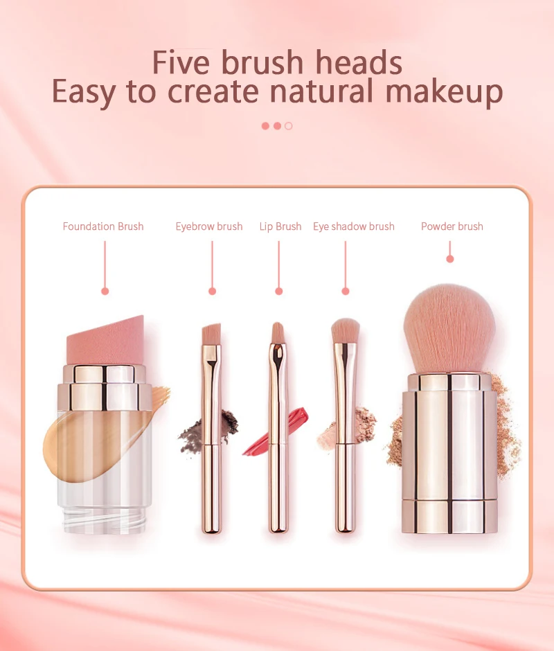 Портативная Кисть для макияжа 5 в 1, макияж кисти многофункциональный, кисть для бровей, губ, теней, пудры, румян