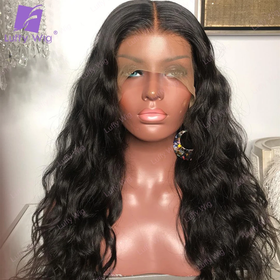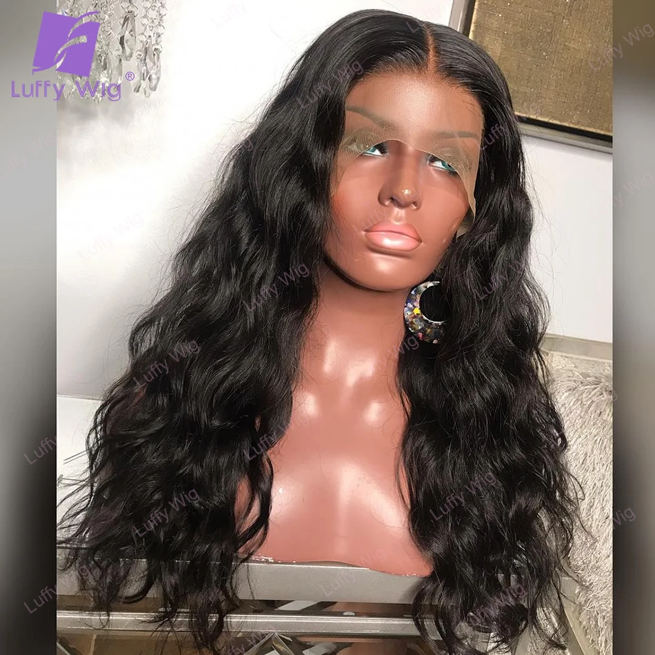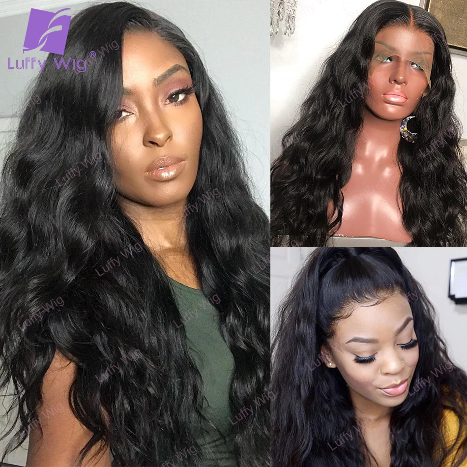 Длинный волнистый передний парик на сетке 13x6, бразильские парики без клея из человеческих волос, HD Прозрачная сетка, предварительно выщипанные для черных женщин, Луффи