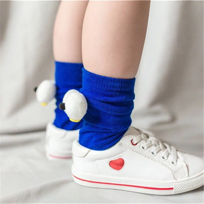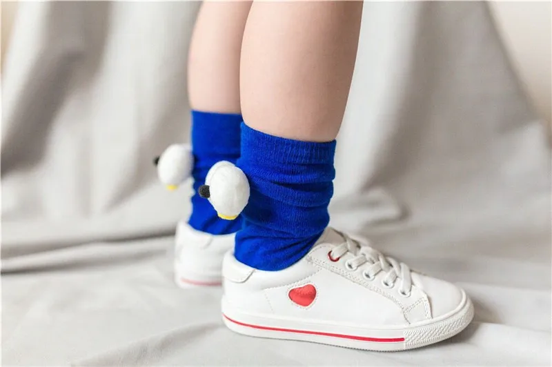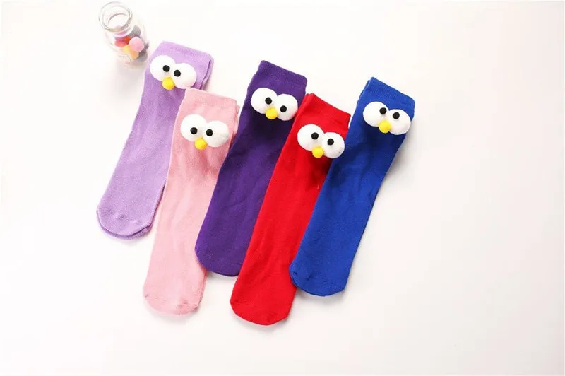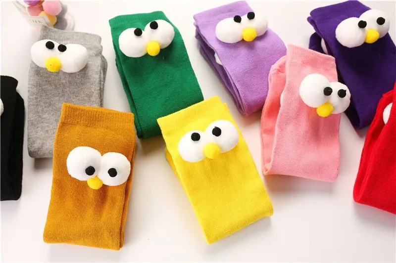 Хлопковые носки для маленьких мальчиков и девочек, детские милые однотонные Длинные носки с объемным рисунком Больших Глаз для младенцев на весну и осень, для младенцев