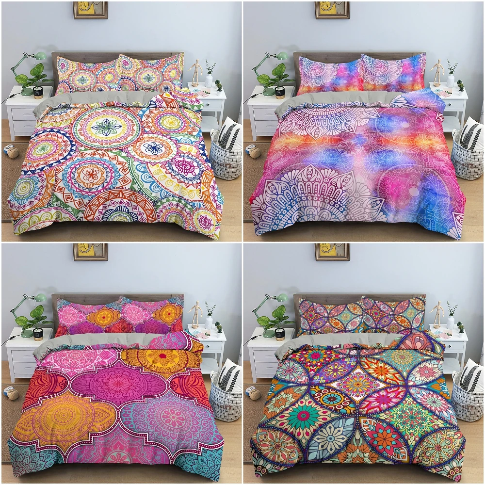 Комплект постельного белья с 3d-изображением экзотической мандалы, романтичное богемное одеяло, чехол в стиле бохо, Круглый и цветочный пододеяльник, мягкий комплект постельного белья из микрофибры