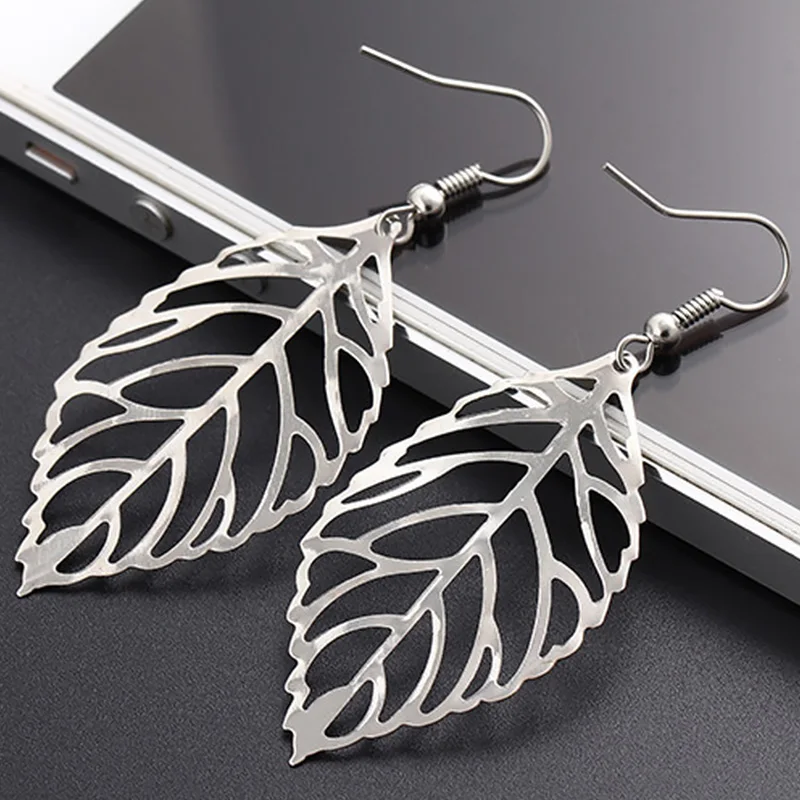 Горячая Распродажа модных ювелирных изделий оптом полые металлические листья Висячие длинные Эффектные серьги для женщин Свадебные ювелирные изделия аксессуары