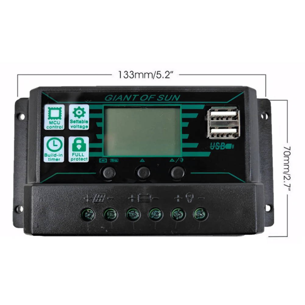 Контроллер заряда солнечной батареи MPPTPWM 2-в-1, 12 В24 В, интеллектуальный регулятор заряда солнечной панели с двумя USB-портами и ЖК-дисплеем