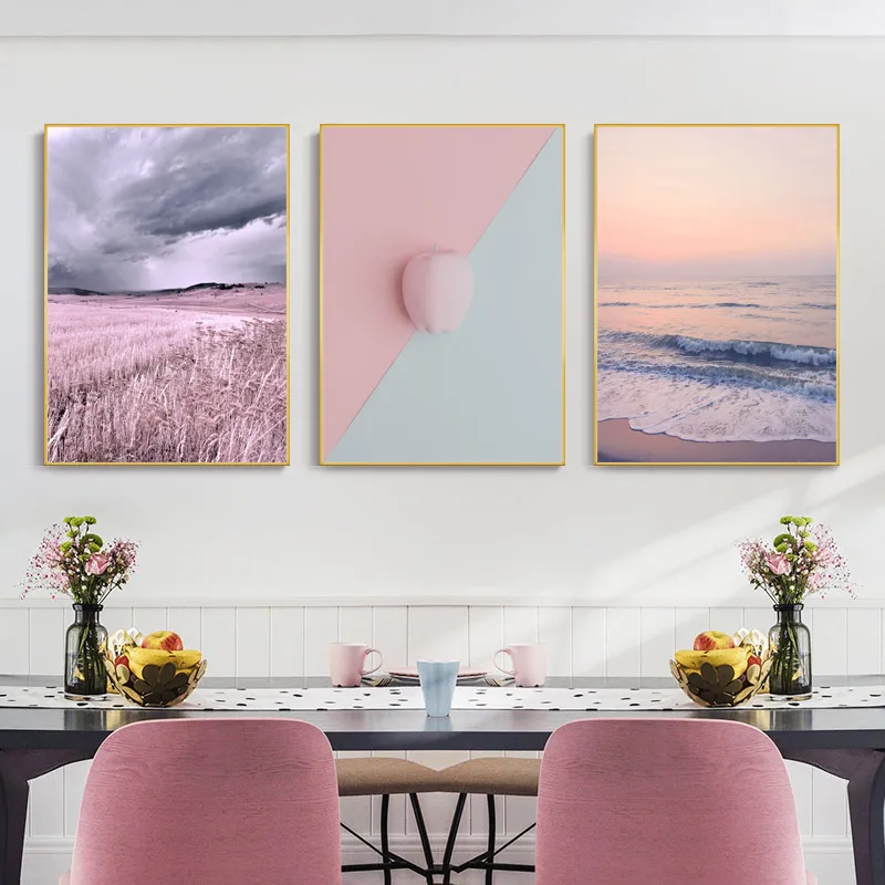 Природа Пейзаж постер морской восход и фотообои розовая любовь искусство печатная картина на стену для дома гостиной Декор