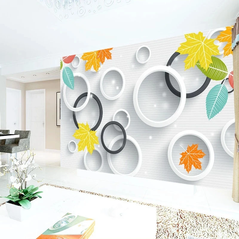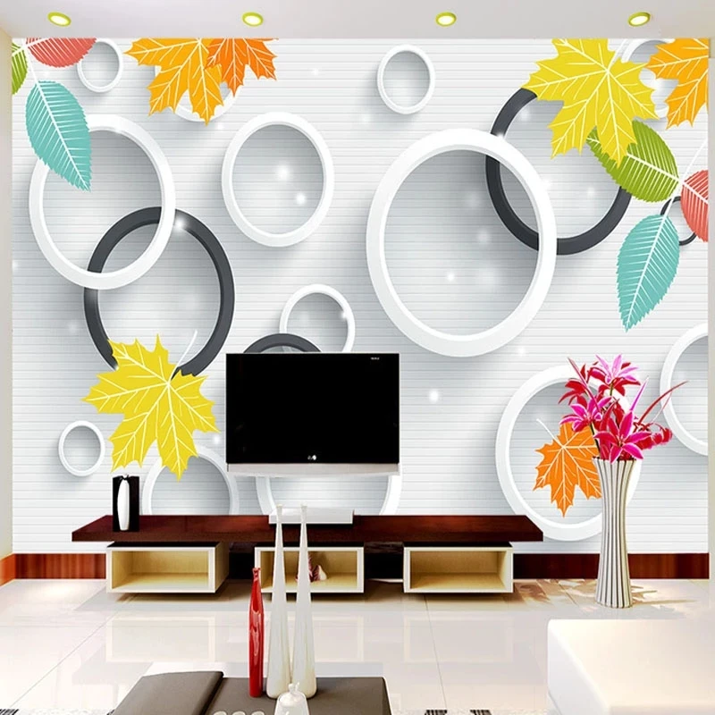 Самоклеящиеся фотообои любого размера на заказ, 3D круги, листья, пейзаж, настенные водонепроницаемые обои для гостиной, телевизора, дивана