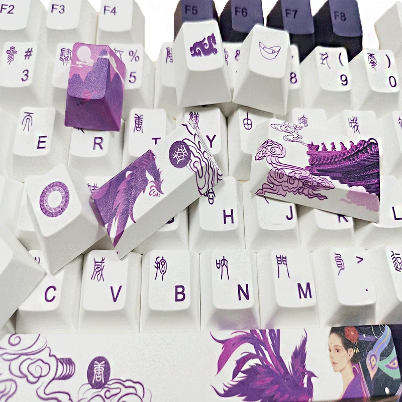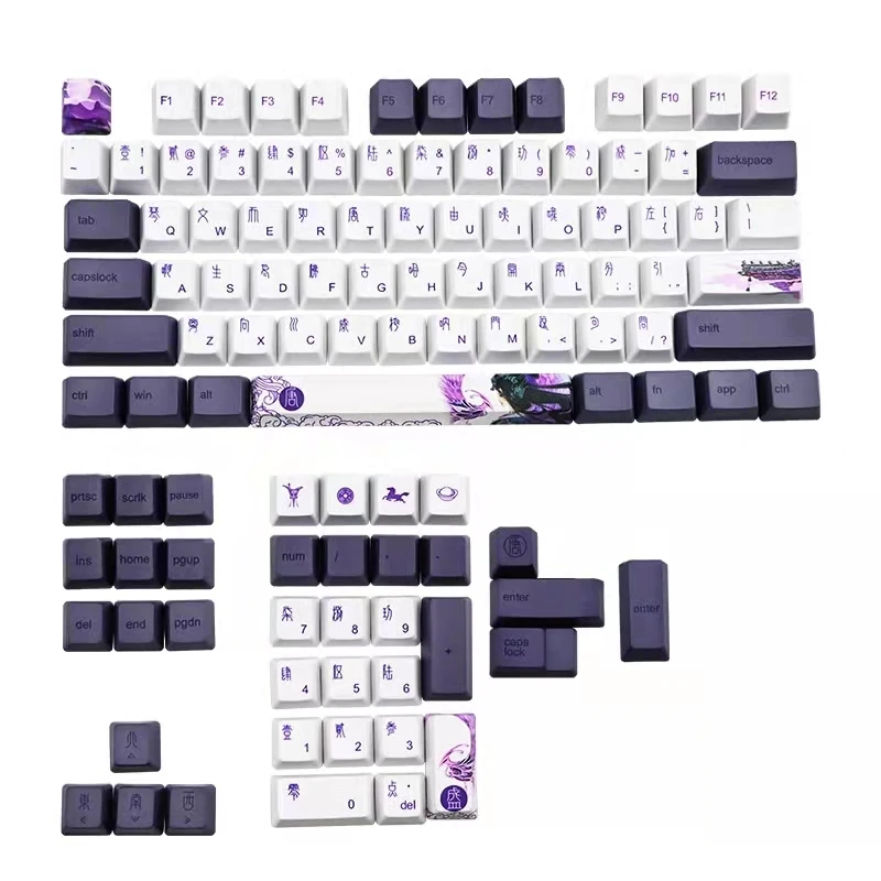 104 колпачки для ключей фиолетовые колпачки для ключей Datang PBT сублимационные колпачки для ключей Вишневый профиль механическая клавиатура Keycap китайский стиль GK61 GK64