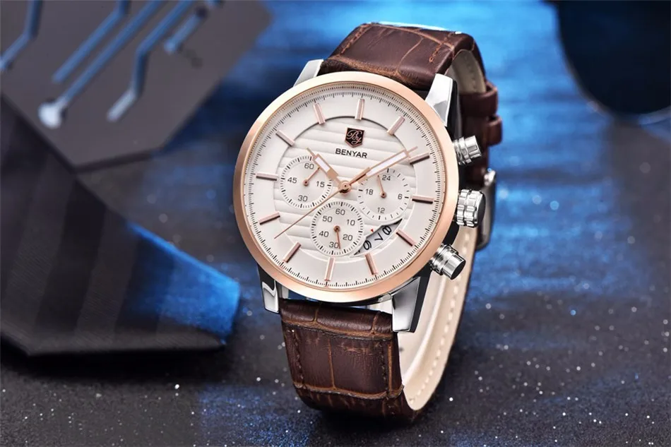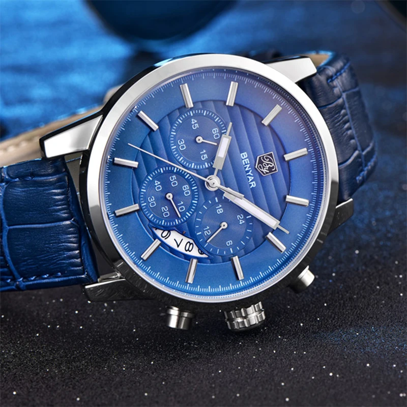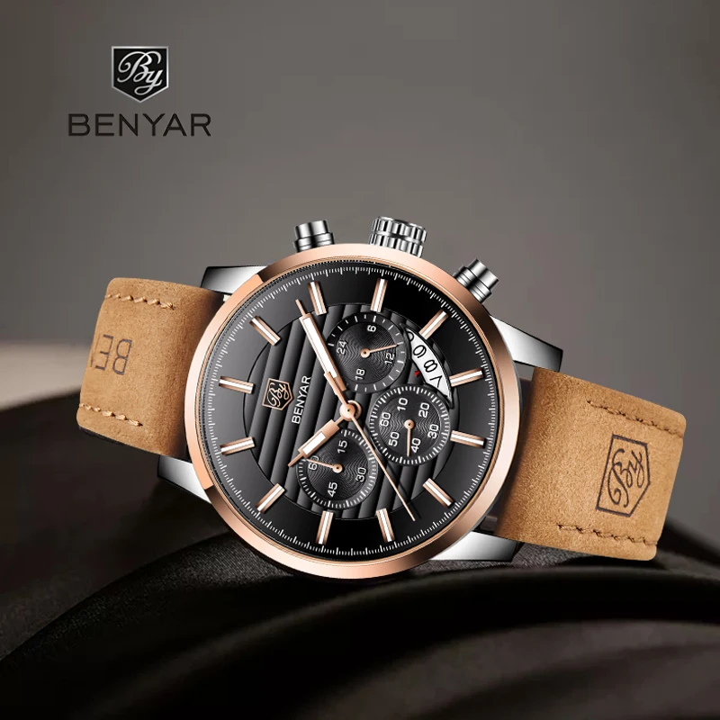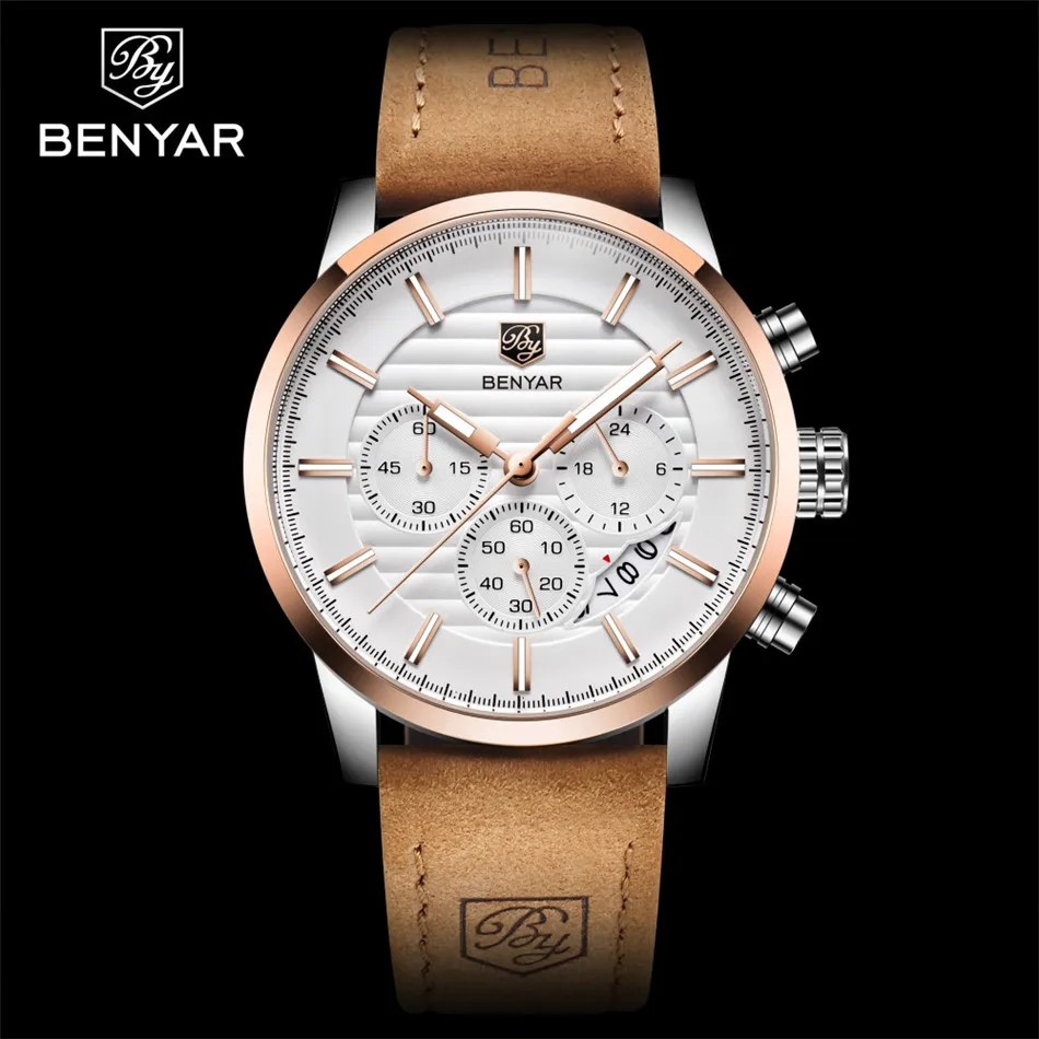 Часы наручные BENYAR Мужские кварцевые, брендовые Роскошные водонеп...