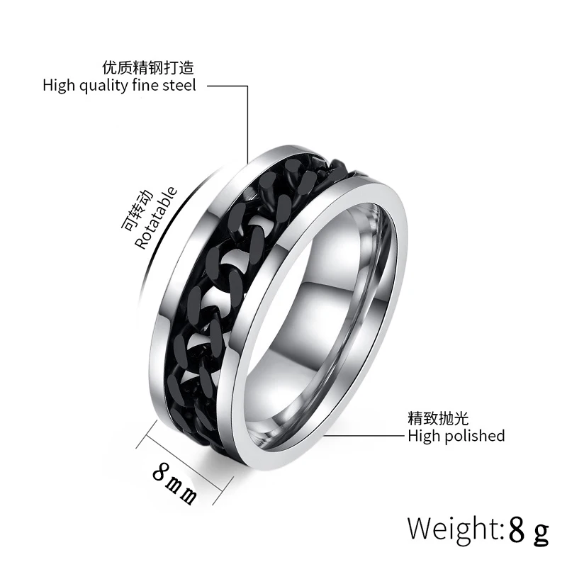 Кольцо мужское, из нержавеющей стали, 8 мм, прядильная цепь
