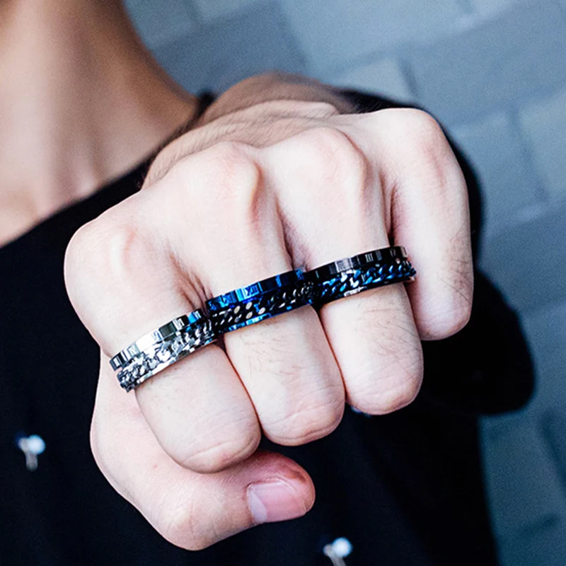 Модное и классное мужское кольцо из титановой стали, вращающаяся це...