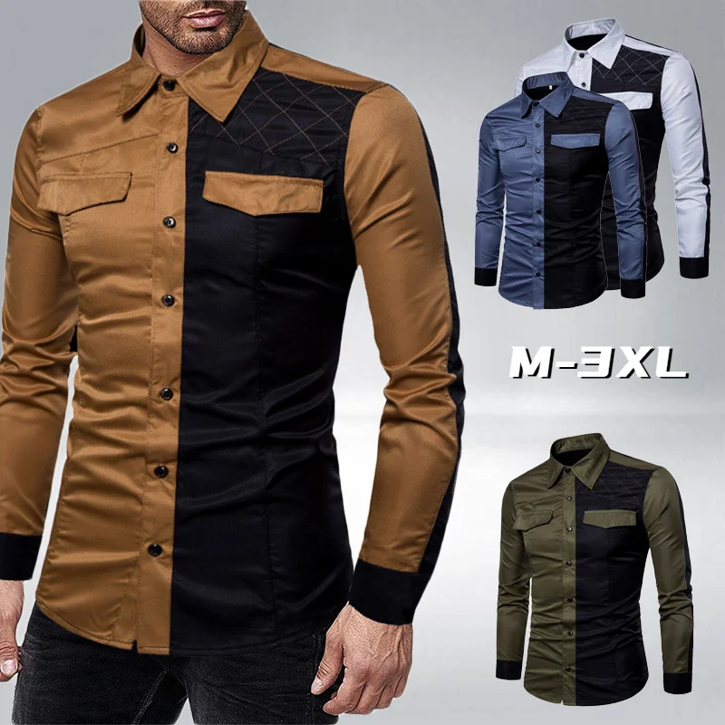 Мужская рубашка с длинными рукавами, с накладным карманом