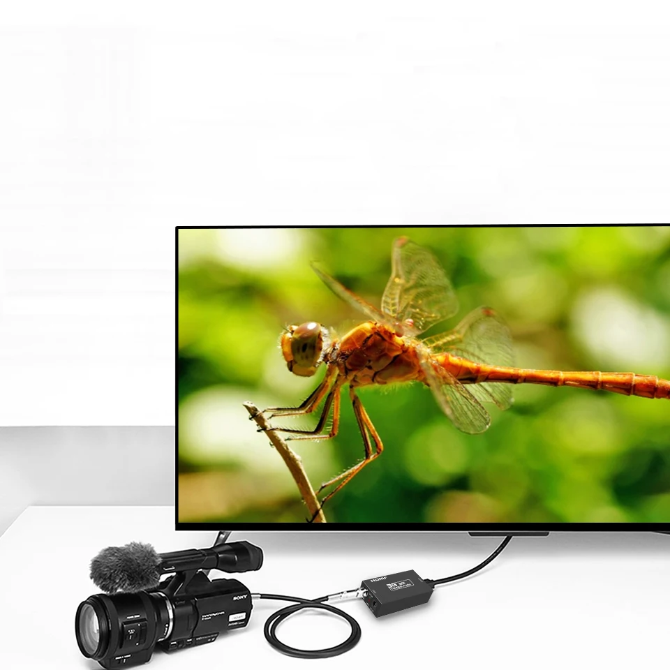 Мини-sdi в HDMI конвертер может преобразовывать SDI сигналы в сигналы HDMI, обеспечивая высокую скорость передачи 2,970 Гбит/с, предоставляя вам сигнал высокого разрешения без потери сигнала.