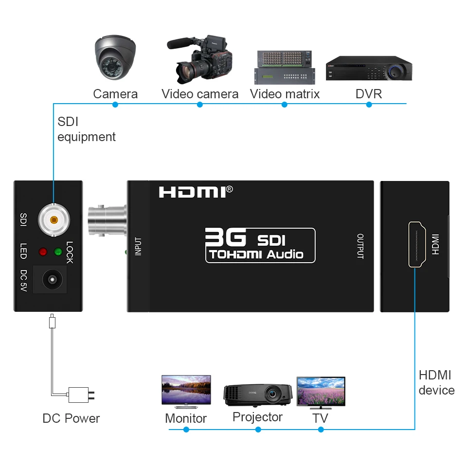 SDI to HDMI адаптер конвертер SDIHD-SDI3G-SDI адаптер SDI адаптер Поддержка 1080P для Камера дома Театр