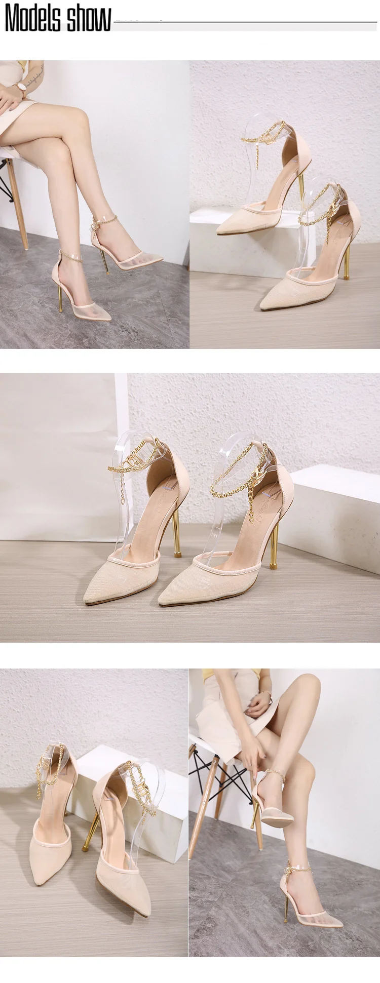 Женские туфли с острым носком LTARTA, из сетчатой ткани, на высоком каблуке-шпильке, дышащие туфли с цепочкой и закрытым носком, JXQ