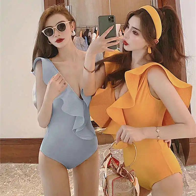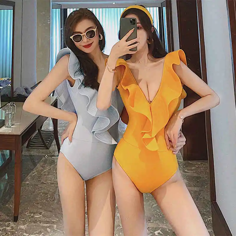 Купальник женский, сплошной, из спандекса, пуш-ап, с листочками, однотонный, большой, 2021