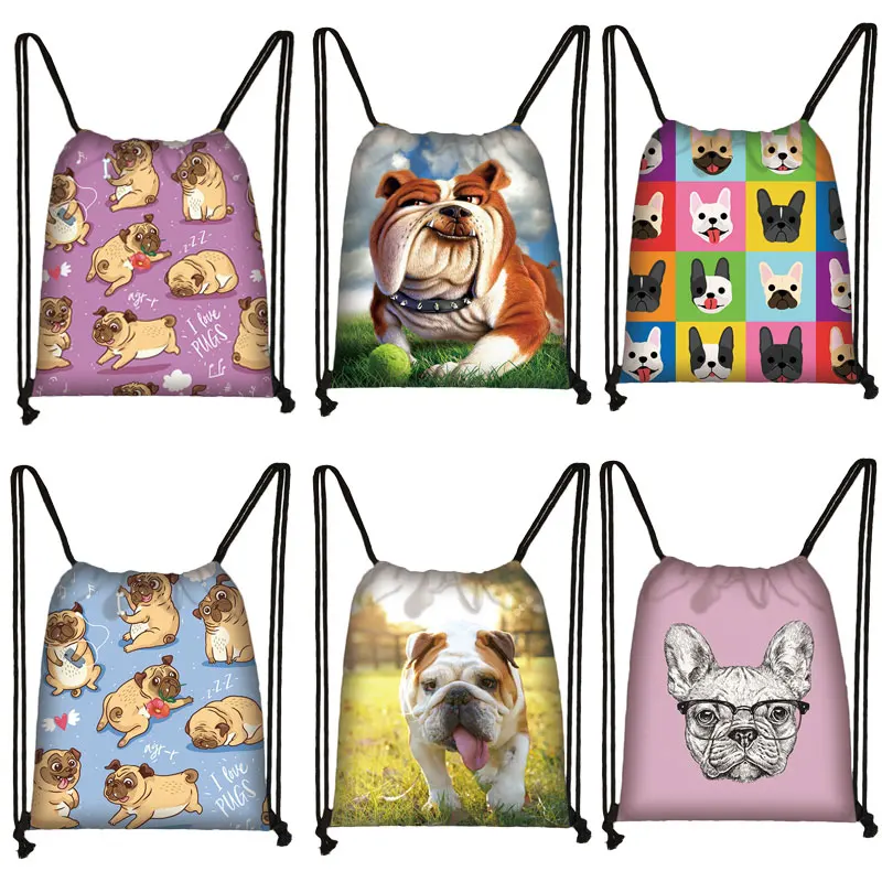 Модный женский рюкзак на шнурке с мультипликационным 3D рисунком собаки мопса для путешествий женский рюкзак сумки на шнурке