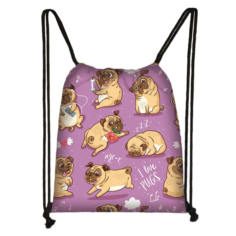 Модный женский рюкзак на шнурке с рисунком собаки из мультфильма 3D мопса, с принтом собаки, для путешествий, Softback, для женщин, Mochila, сумки на шнурке