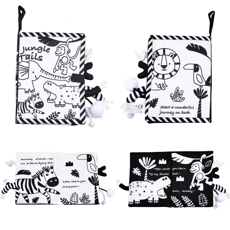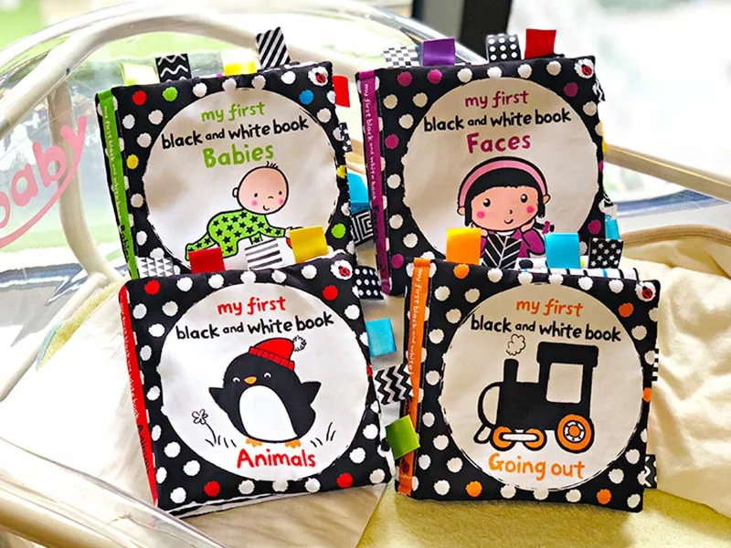 Развивающие детские Книги для малышей 0-12 месяцев, черно-белая Мяг...