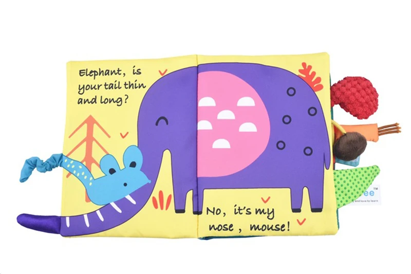 Детские книжки 0-12 месяцев, тканевая книга с животными, хвостами, ...