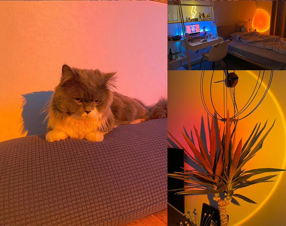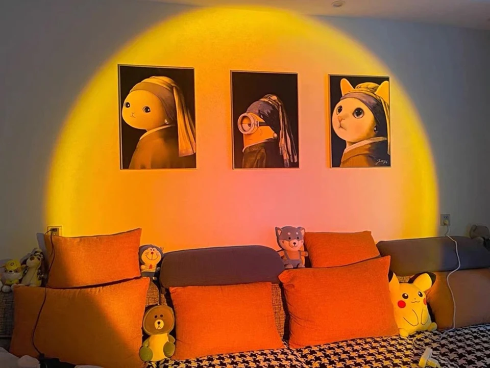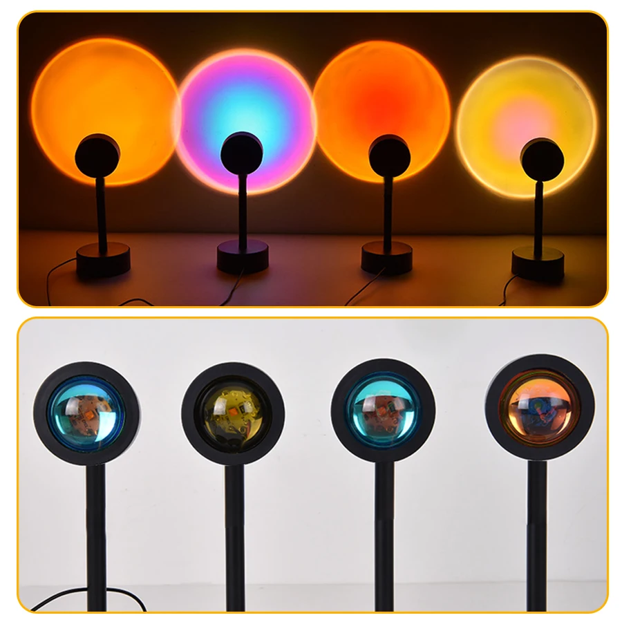 Радужный закат, лампа светильник, проектор USB, атмосфера, ламсветильник для дома, спальни, кофейни, магазина, фон для украшения стен