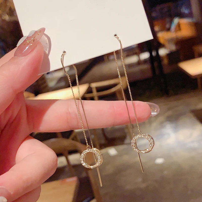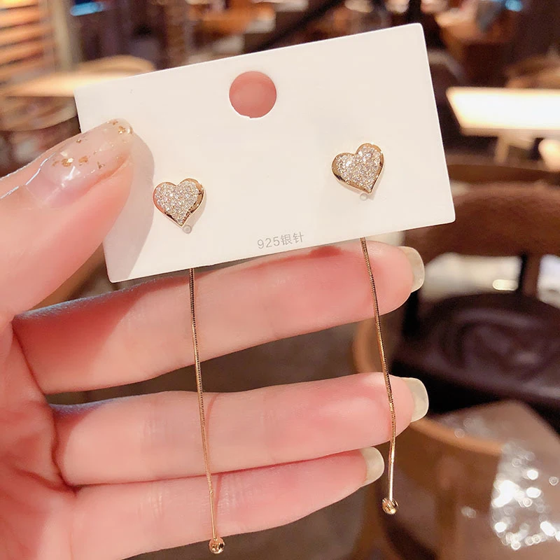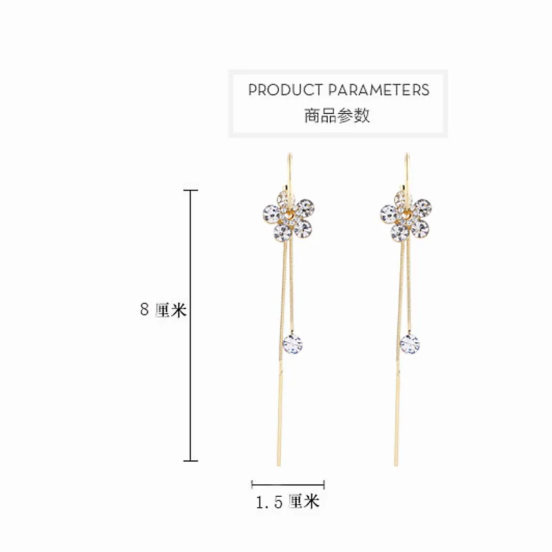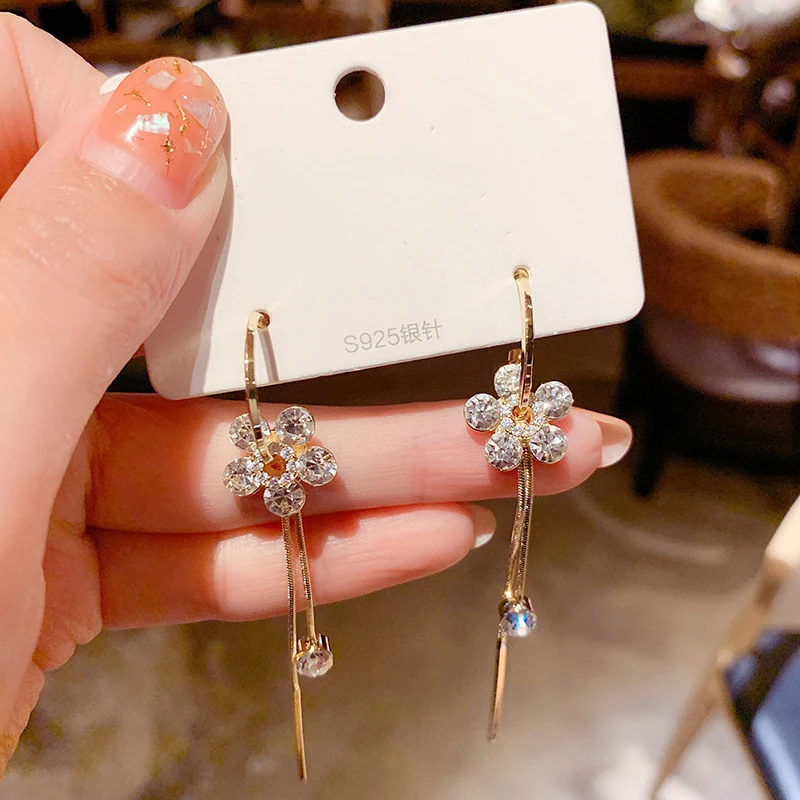 Корейской моды длинная цепочка сердце, свисающие серьги для женщин, серьги изысканный Темперамент цветочные серьги из горного хрусталя для девочек вечерние ювелирные изделия
