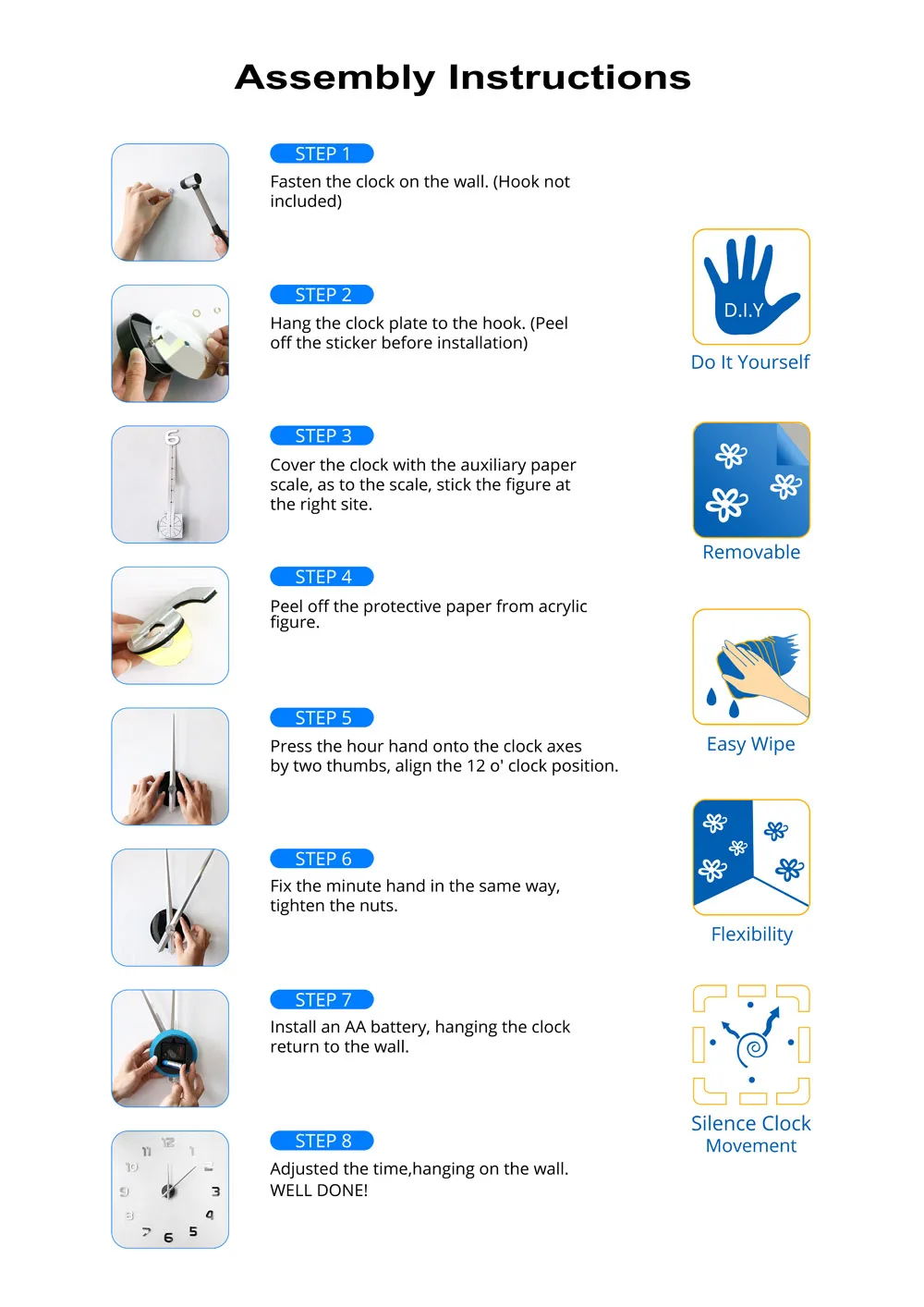 Украсьте свой дом и сделайте его более персонализированным с помощью этих 3D настенных часов DIY. Это будет работать не только лучше для вашего дома, но и как Творческая идея подарка для вашей семьи и друзей. Используйте его на вашей любимой стене и сделайте кристальную поверхность идеальным отражением светильник. Вы можете повесить его на стену своей спальни, кухни, кабинета или в любом месте, где бы вы ни хотели добавить уникальный и новый стиль. Наслаждайтесь завистью от ваших гостей!