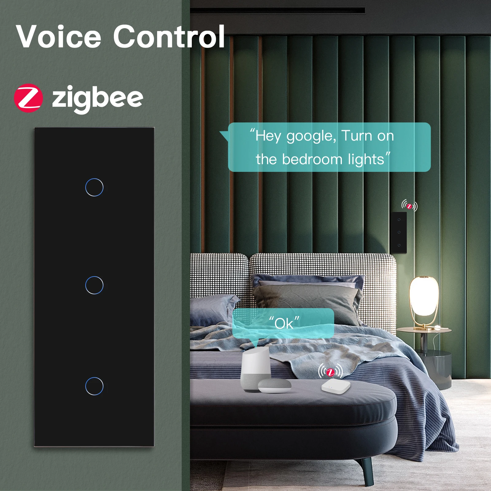 BSEED Zigbee светильник переключатели тройной 1/2/3Gang Беспроводной Смарт настенных выключателей, Wi-Fi, сенсорный экран Сенсор выключатель Smart Life Tuya Google Alexa