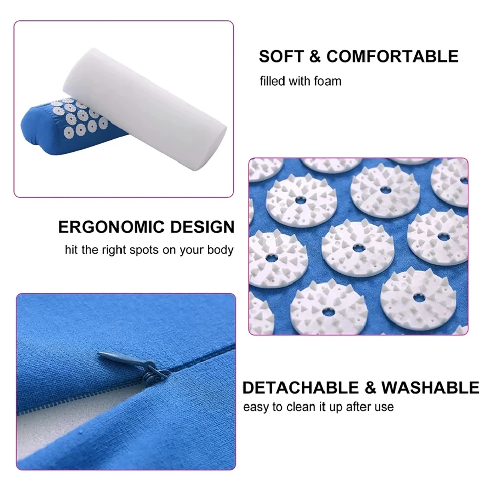 Состоит из тонкого коврика, покрытого шипами из АБС-пластика. Он вдохновлен древними индийскими традициями исцеления, которые, как считается, были вокруг в течение тысяч лет. Тысячи шипов, которые были стратегически размещены на коврике и подушке, безвредны для кожи и обеспечат вашему телу целебные преимущества.