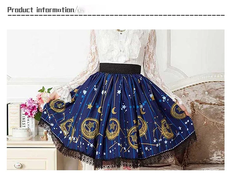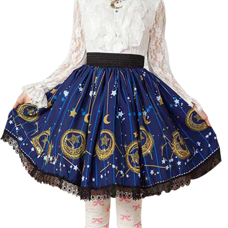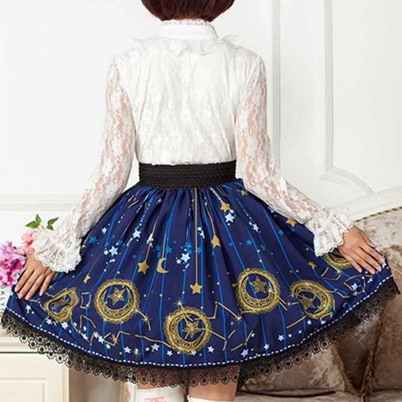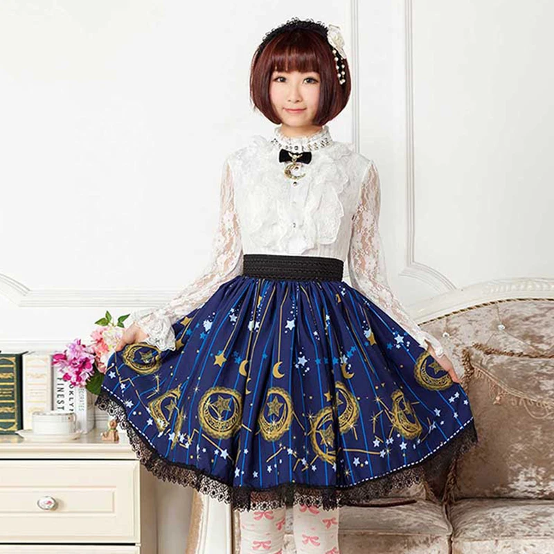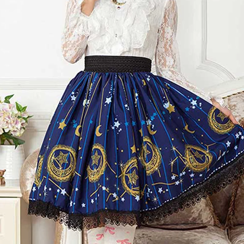 Японская полуночная Астрология Лолита Kawaii Goth юбка Милая принцесса плиссированная Лолита SK трапециевидная юбка с кружевной отделкой женские юбки