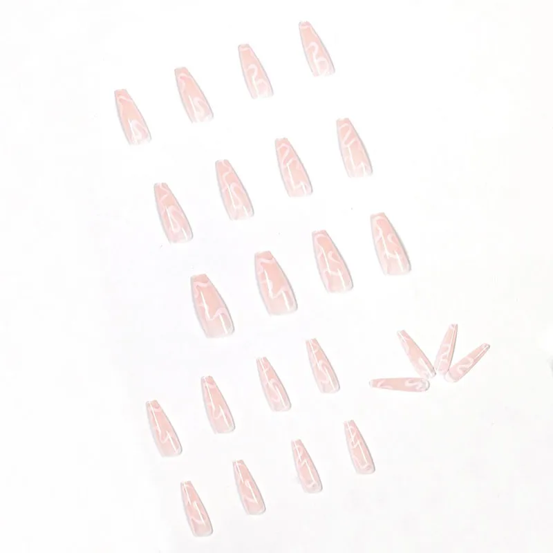 24 шт./компл. европейский гроб поддельные ногти Простой Длинный телесный розовый волнистый узор Ногти Макияж полностью акриловые балерины ногти