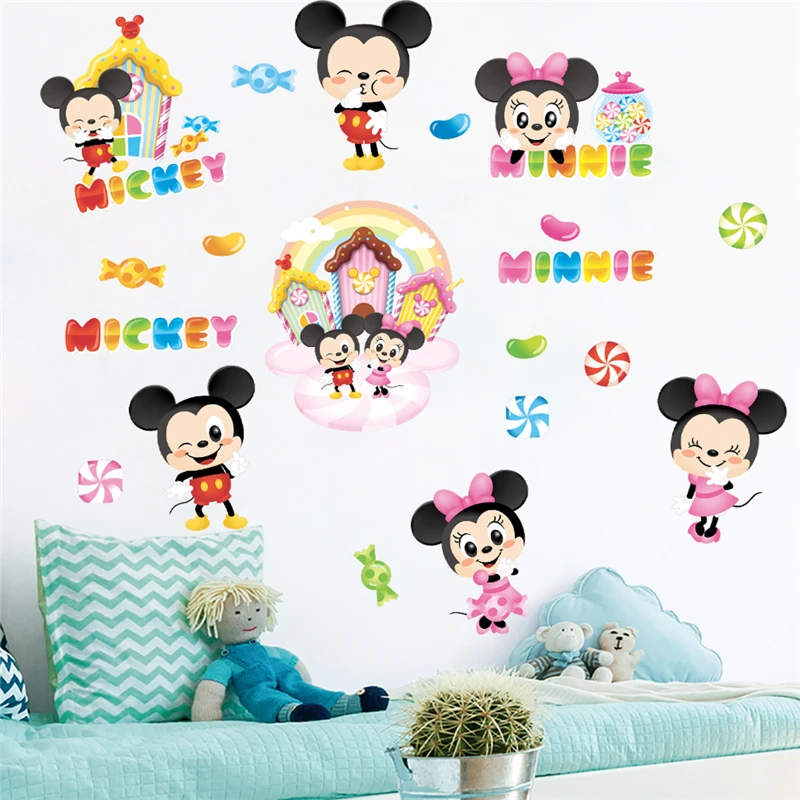 Disney Микки; Минни 20*30 см настенные наклейки для детской комнаты детская домашний декор мультфильм наклейки на стены ПВХ Настенные искусственные поделки без отверстий, плакаты