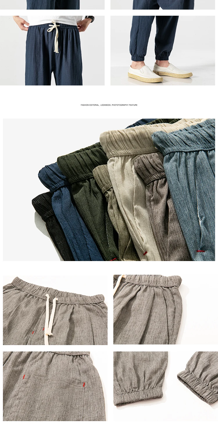 Брюки-Джоггеры мужские в китайском стиле, хлопково-льняные спортивные штаны, Повседневные Легкие Брюки, весна-лето