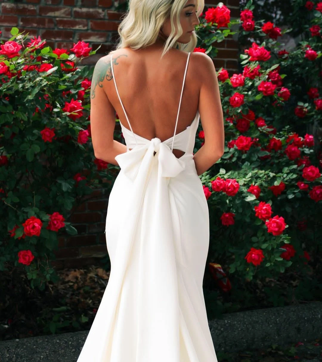 Женское атласное платье с юбкой-годе, длинное белое платье с V-образным вырезом, бантом и открытой спиной, в пол, для свадьбы