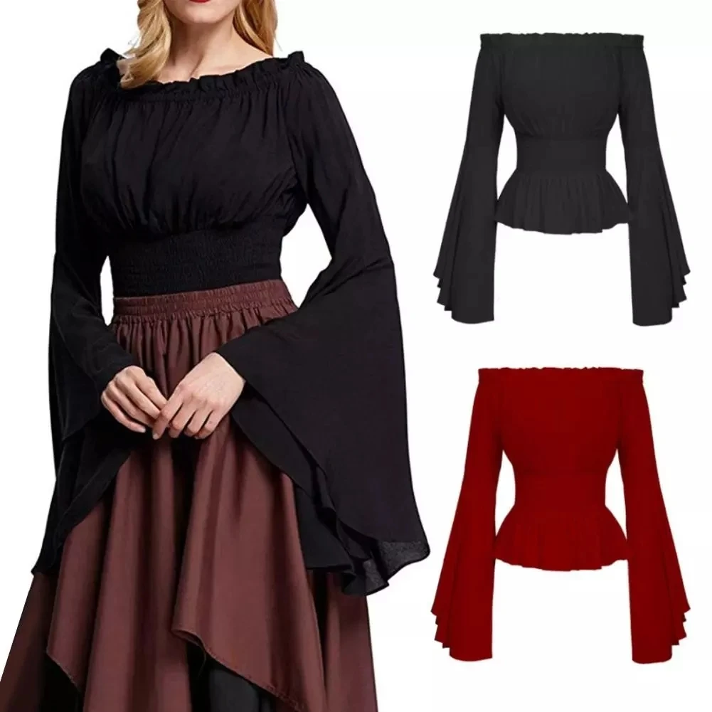Блузка женская в стиле эпохи Возрождения, рубашка с открытыми плеча...