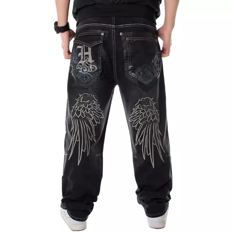 Джинсы мужские с вышивкой, Модные свободные брюки из денима, стиль ...