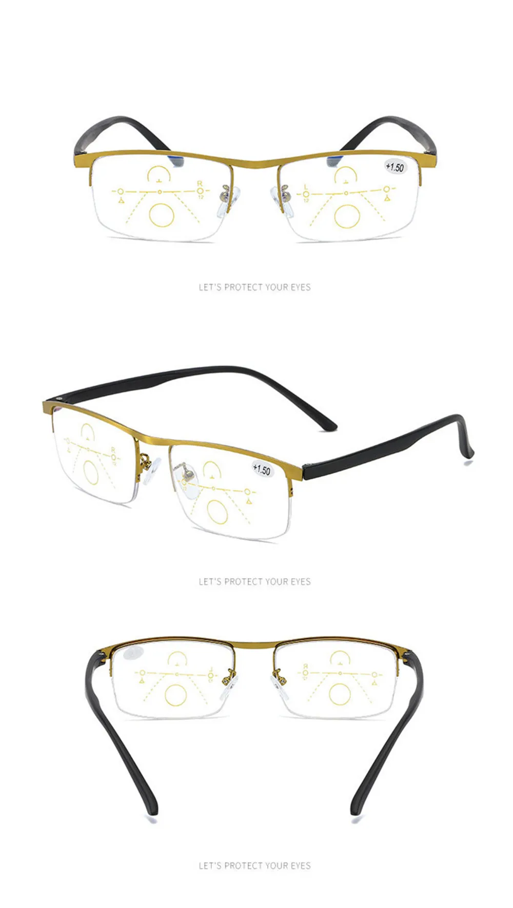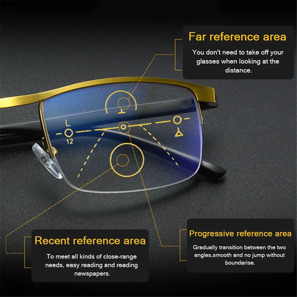 Умные многофокальные очки Seemfly в стиле ретро для чтения с прогрессивными синими лучами, классические очки унисекс в металлической оправе с прозрачными линзами для дальнозоркости