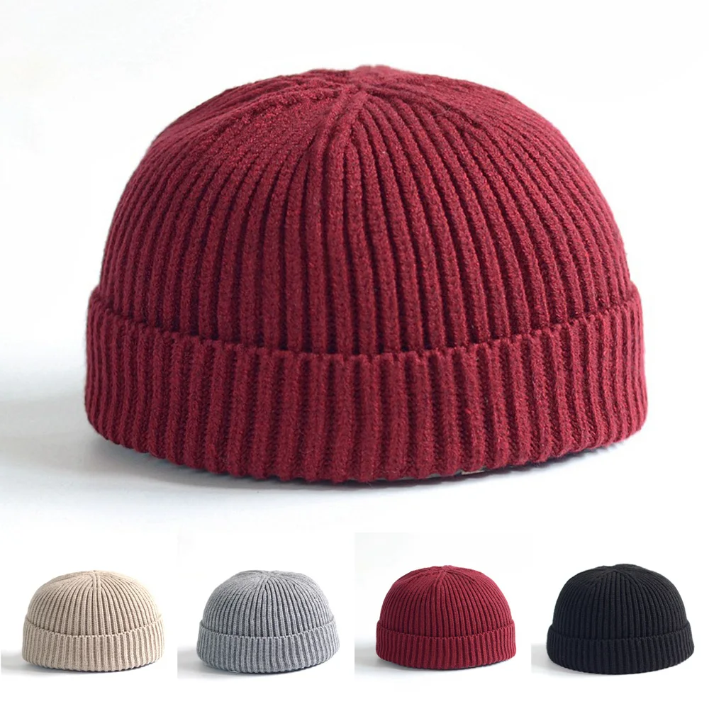 Зимняя мужская Трикотажная короткая шапка с манжетами, новая мужская вязаная шапка, Шапка-бини с черепом, Матросская шапка, шапка без козырька в стиле ретро и флота