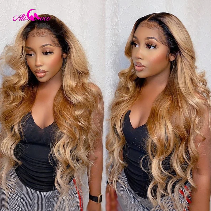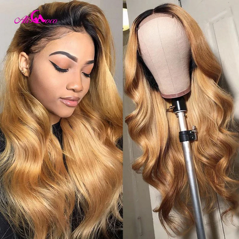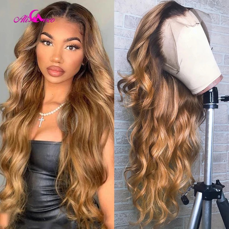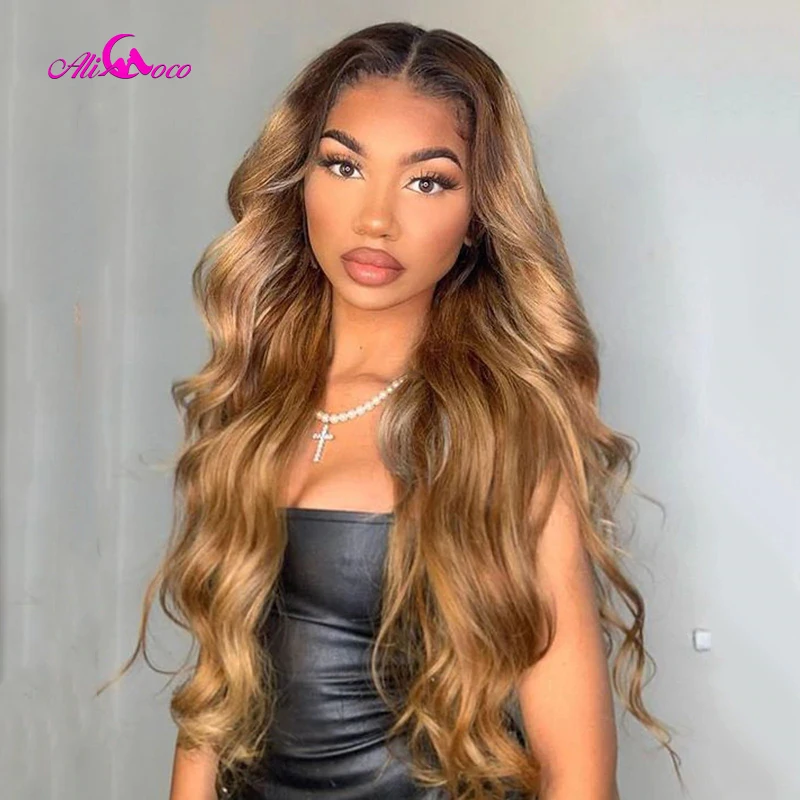 Али Коко 1B 27 цветов ed волнистые человеческие волосы парики Малайзия коричневый блонд цвет человеческие волосы кружевные парики предварительно выщипанные Отбеленный узел